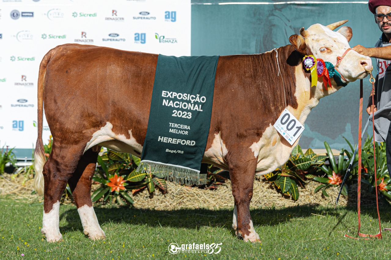 Nas fêmeas da raça Hereford, a Cabanha Touro Passo, de Uruguaia (RS), se consagrou a Grande Campeã, conquistando a preferência do jurado com a exemplar de tatuagem 3726. A propriedade também leva para casa o prêmio de Terceira Melhor com a fêmea de tatuagem 4073.