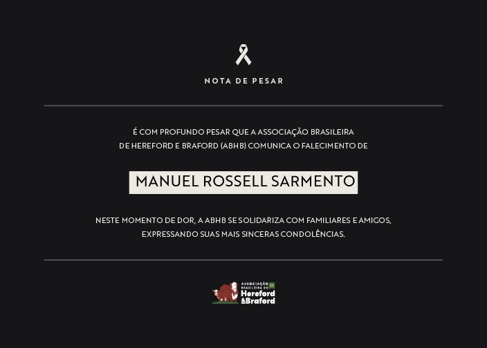 É com profundo pesar que a Associação Brasileira de Hereford e Braford (ABHB) comunica o falecimento de Manuel Rossell Sarmento, ocorrido no dia de hoje (17).